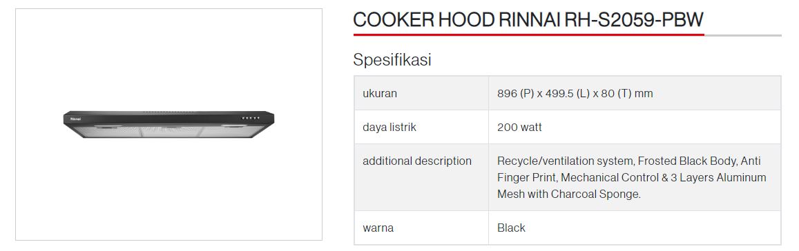 Buat Dapur Anda semakin modern dengan Cooker Hood Rinnai RH-S2059-PBW