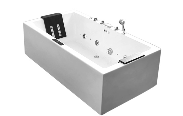 Jacuzzi bathtub ini cocok untuk desain interior kamar mandi mewah dan berkelas.Bantalan pada kepala bathtub memungkinkan pengguna berendam dan mandi uap sambil menikmati lilin aromaterapi dalam waktu yang lama.