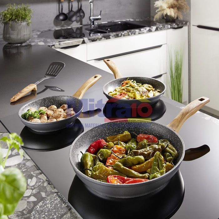 Stoneline Wajan Penggorengan 24 cm dengan desain gagang kayu. Lapisan anti lengket dengan partikel batu asli.Frypan Stoneline 10 kali lebih tahan lama daripada peralatan masak non-stick tradisional. Memasak dan menggoreng ramah vitamin tanpa lemak dan minyak.