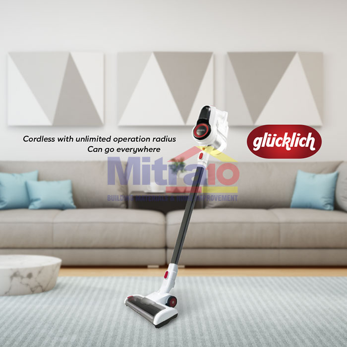 Vacuum cleaner dari Glucklich dengan tipe stik cocok untuk Sahabat Mitra10 yang ingin lebih praktis dan ringkas dan hanya dapat digunakan untuk membersihkan permukaan lantai kering atau dry.