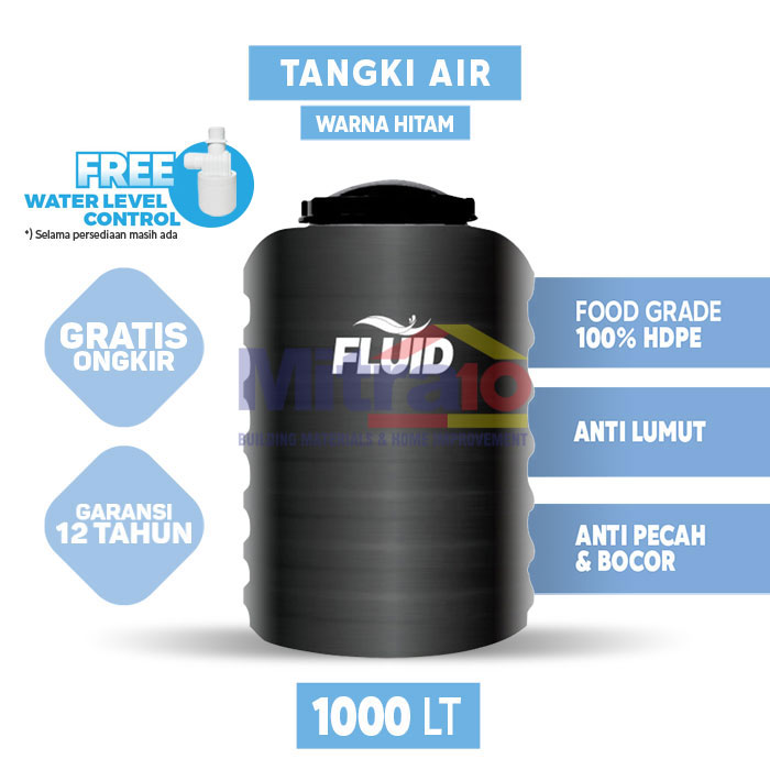 Fluid Toren Air 1000 Liter Hitam Plastik HDPE