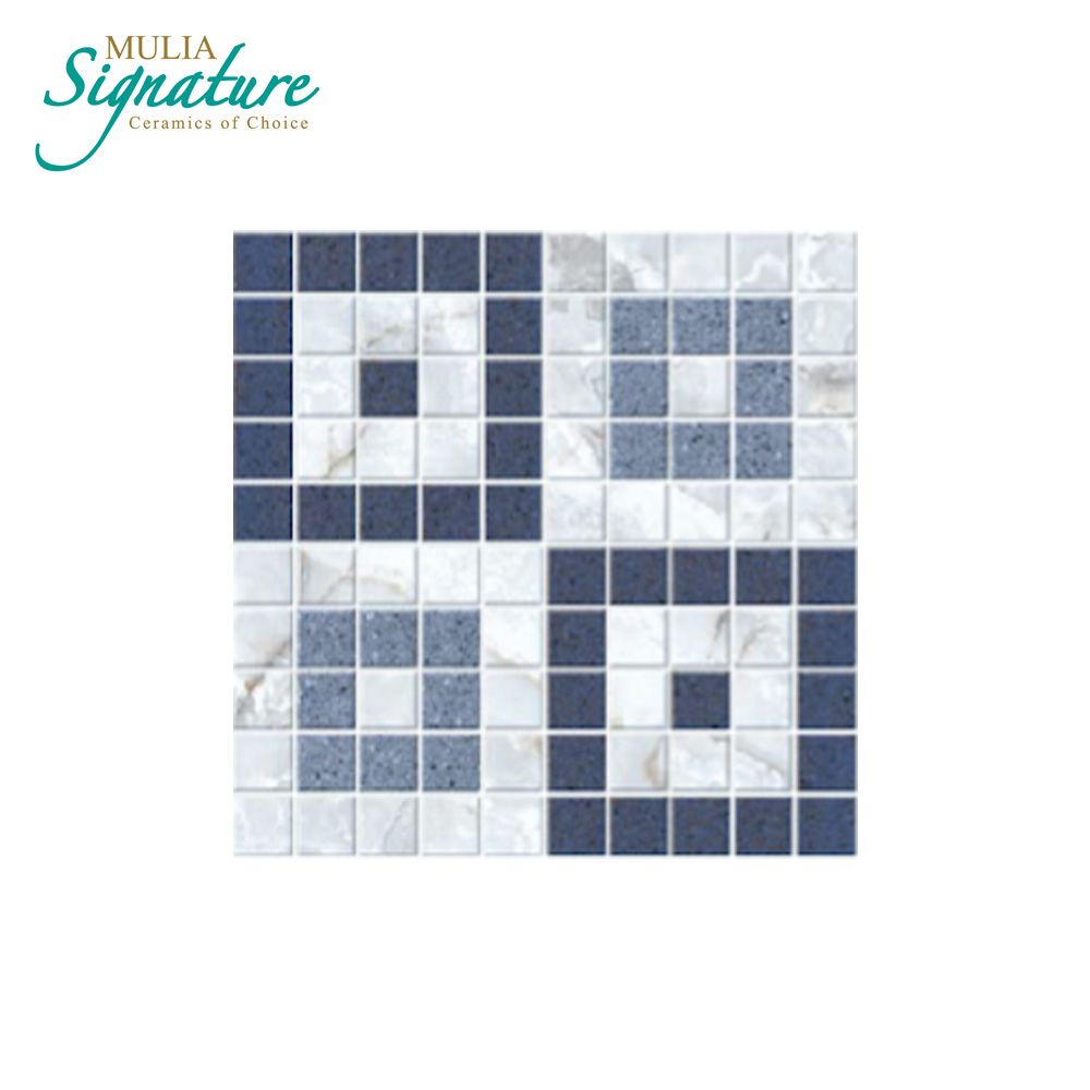 Signature Keramik Lantai 25x25 Neo Mozaico Biru Motif Kotak Kotak Mozaik Matt