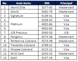 - Bin yang berlaku, sbb :