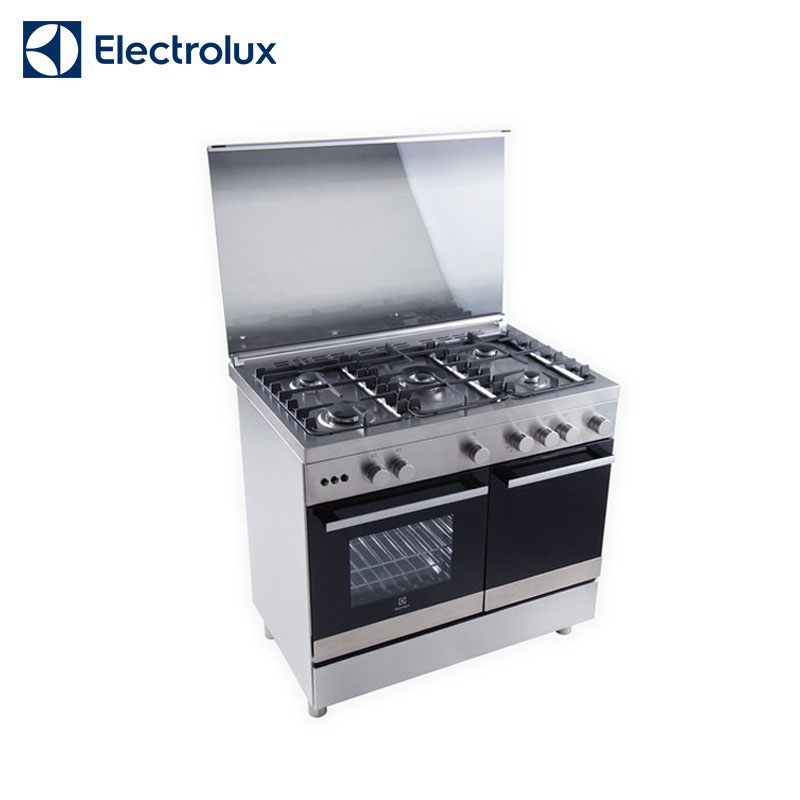 Electrolux freestanding cooker 90cm EKG9686X-2 kompor gas dengan oven Menjadikan waktu memasak Anda lebih aman dan efisien. Dilengkapi 5 tungku pembakaran dengan tata letak yang luas, penutup kompor dapat menutup secara perlahan dan kontrol panas presisi, dengan fitur pengingat menit (bukan kontrol oven) dan kompartemen penyimpanan.