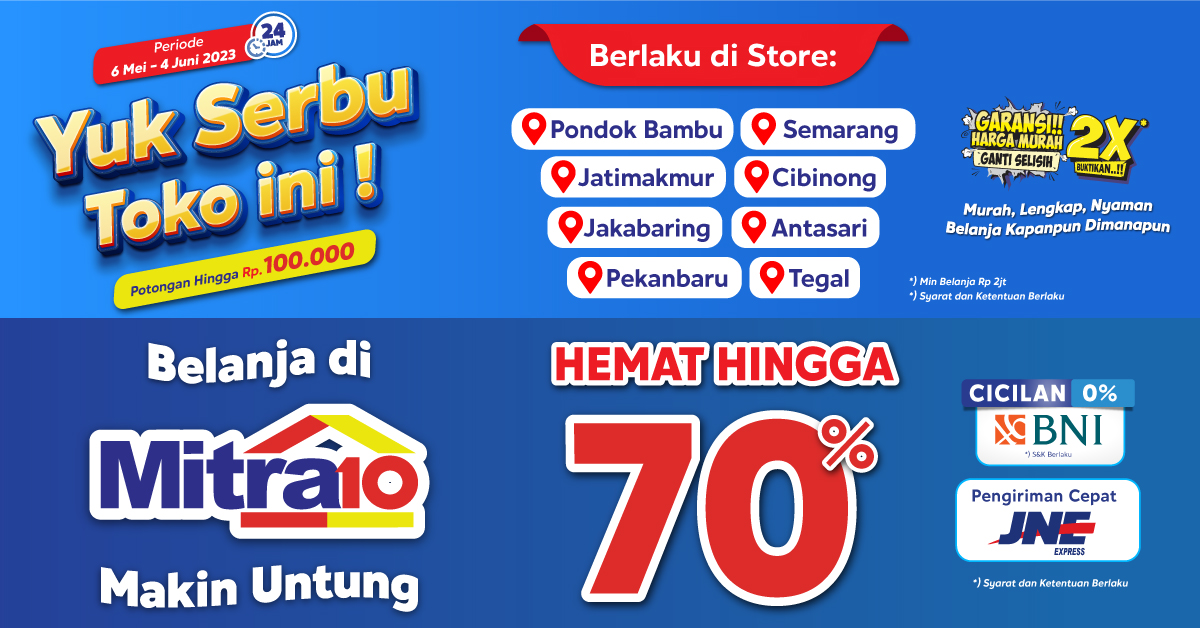 Ingin mendapatkan penghasilan tambahan secara fleksibel? Bergabunglah dengan program affiliate Mitra10 dan nikmati keuntungan berupa komisi hingga 5% dari setiap transaksi yang berhasil melalui link yang Anda bagikan.