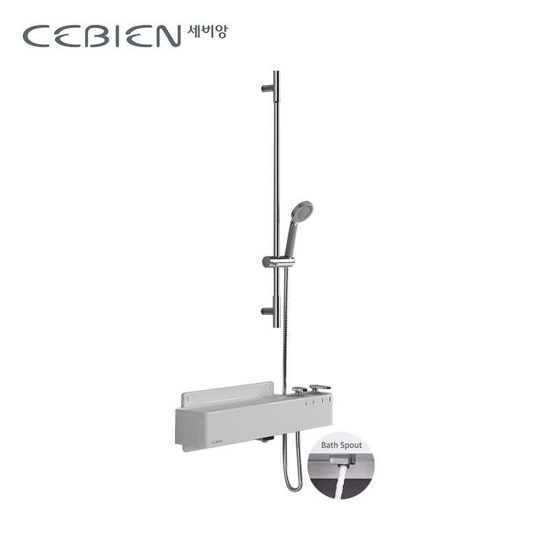 - Komposisi: Hand shower bulat, slide bar/hanger, storage deck, spout mandi