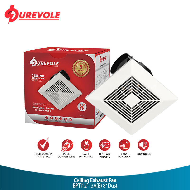 DUREVOLE Ceiling Exhaust Fan Plafon BPTI12-13A(B) 8 Inch