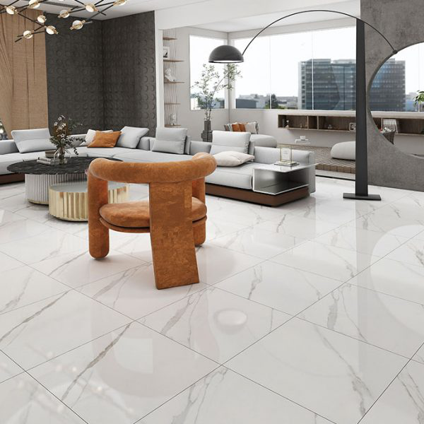 Penggunaan lantai granit berwarna putih pada ruang tamu dapat memberikan kesan yang bersih. Selain itu, lantai granit warna putih juga sangat cocok digunakan pada rumah minimalis karena dapat membuat ruangan terlihat lebih luas dan lapang. Indogress memiliki beberapa produk lantai granit yang bernuansa warna putih, salah satunya adalah Titanio Statuario. Dengan motifnya yang menyerupai marble granit alam membuat ruang tamu menjadi terlihat lebih cantik dan mewah.